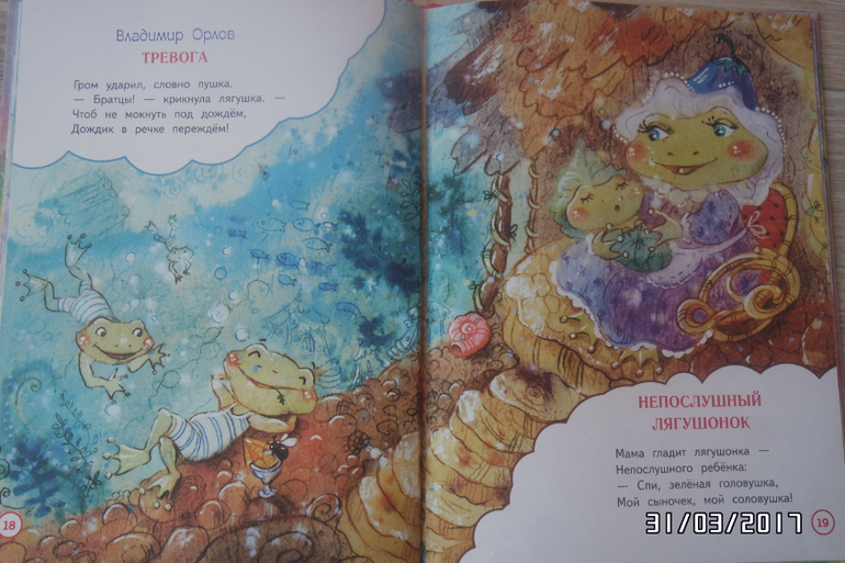 "Непослушный лягушонок", "Разные мнения", "Колыбельная для слоненка" (наше любимое, доброе " Баю, баю, СЛОНышко моё"), "Родное", "Вечернее стихотворение".