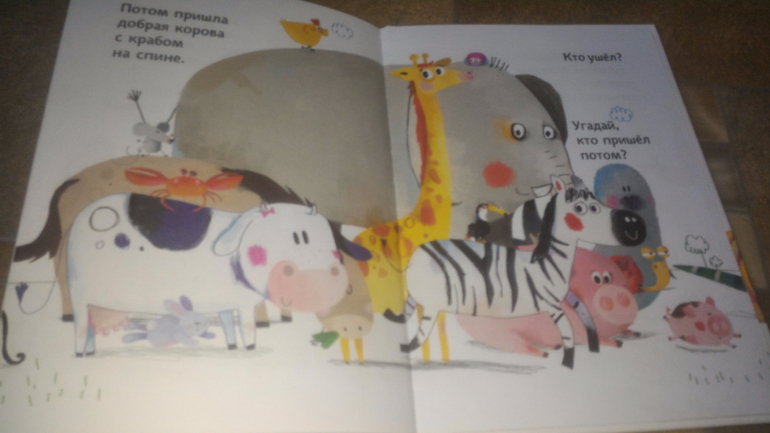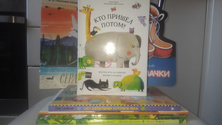 Самая желанная здесь книжка - вот эта очаровашка от "МИФ" "Кто пришел потом". Это книжка-улыбка, действительно) Уже предвкушаю, как вечером будем с сыночком ее читать, угадывать, кто же появится на следующей страничке, и вспоминать, кого не хватает на этой.