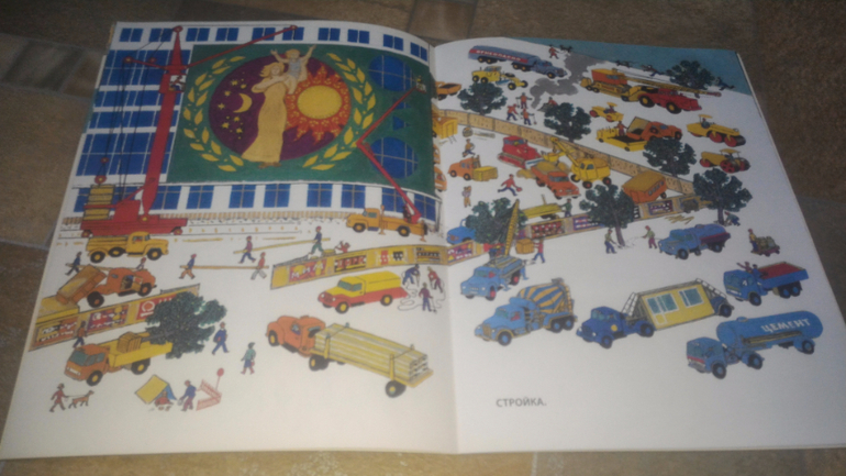 В.Бундин "Куда торопятся машины?". А с покупкой этой книги я, наверно, погорячилась, все-таки Вова подобные виммельбухи уже перерос, ему нужны истории. Посмотрим, а потом отнесем в садик