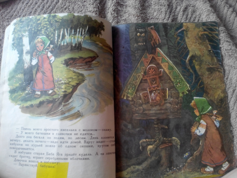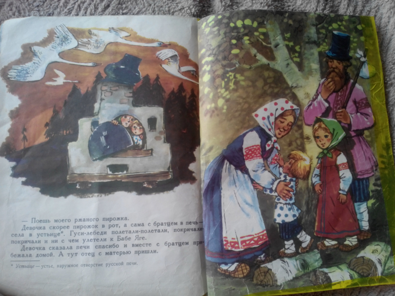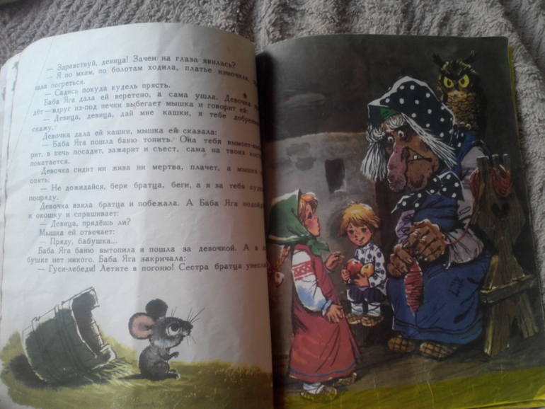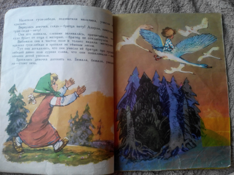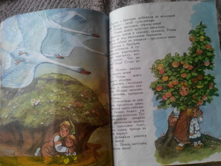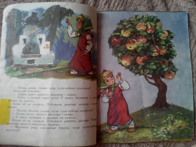 "Гуси-лебеди" с иллюстрациями Савченко . Издательство "Малыш". Книга латана-перелатана. На мой скромный взгляд, это лучшие иллюстрации к этой сказке. Есть у меня еще эта сказка с иллюстрациями Устинова, красиво, но не то. Посмотрите только какая Яблонька.
