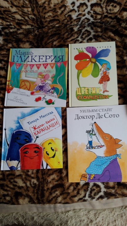 Эти 4 книги у нас пошли на УРА, правда мужу не очень понравился текст в книге "Доктор Де Сото", но так как у нас растет будущий врач, то я не сомневалась, что дочка её оценит.
