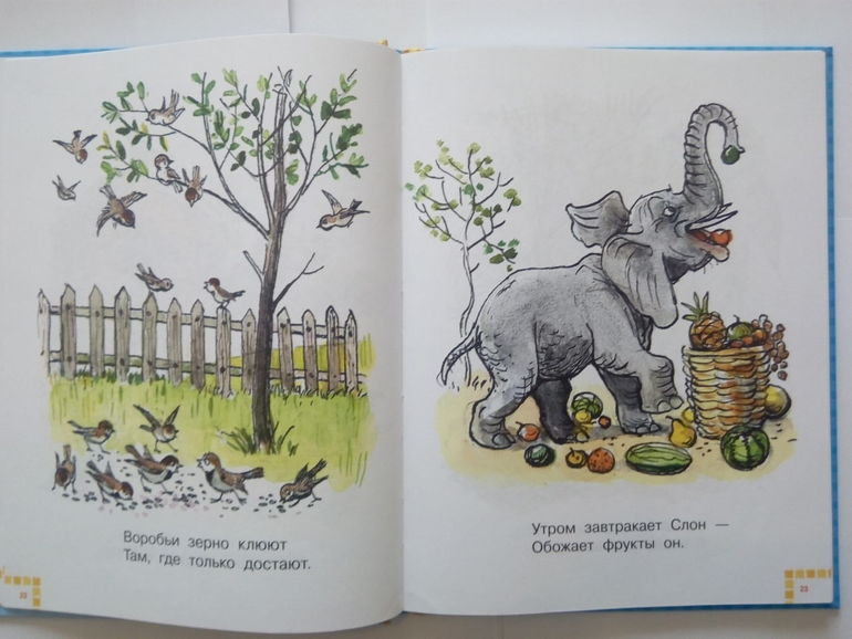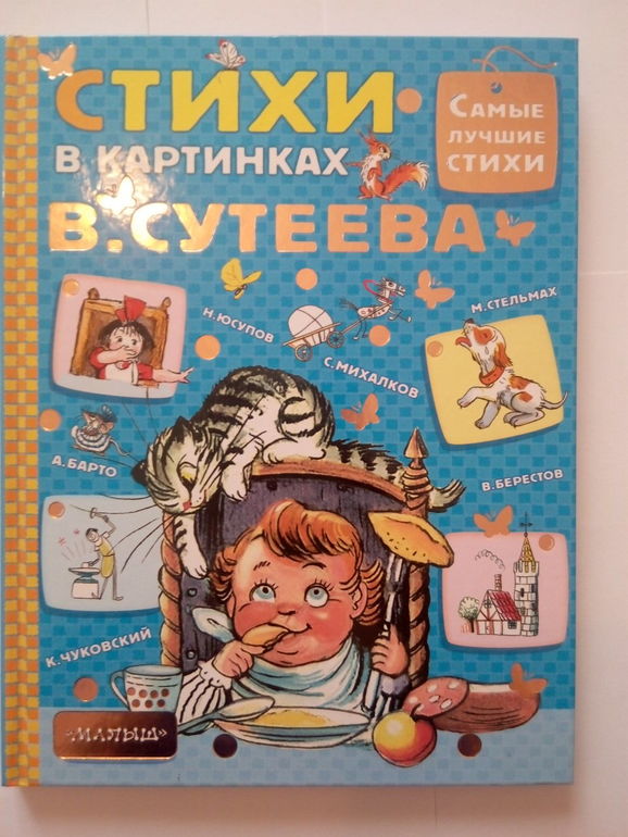 Картинки Сутеева. Стихи самые известные. Оформление очень хорошее. Шрифт крупный. Картинки как в детстве большие, есть на всю страницу. Читаем часто. Книга полюбилась сразу.