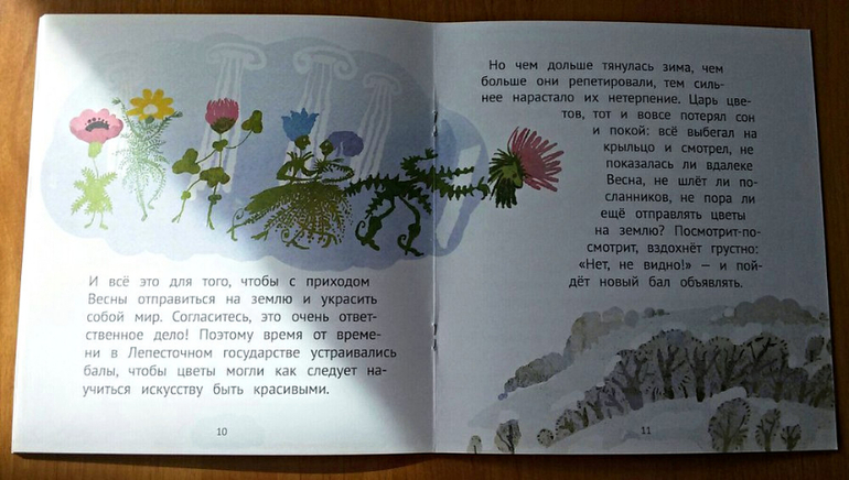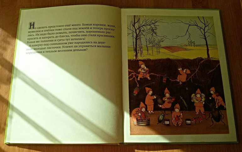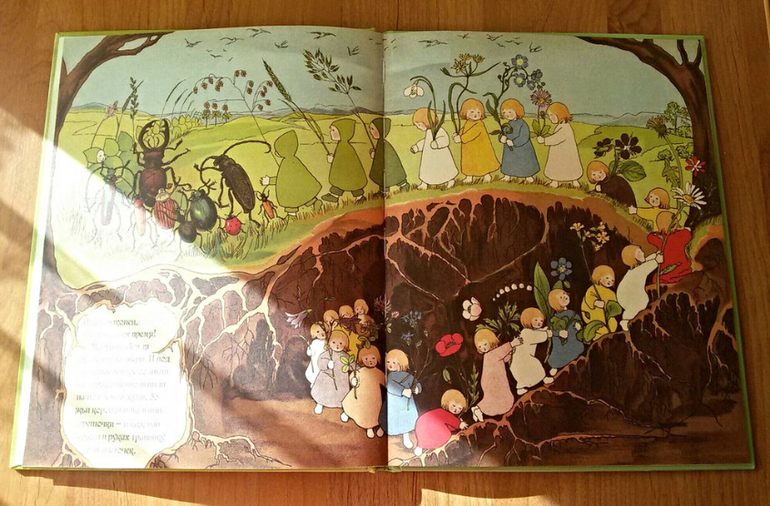 Моим современным детям с обилием различных гаджетов этого точно не хватает. И книга их заворожила. История действительно волшебная. Сибилл фон Олферс создала удивительно теплый и уютный мир, пропитанный нежностью и заботой. В объятиях Матушки Земли спят всю зиму малыши-корешочки в невзрачных одежках. Наступает весна, и они пробуждаются, и выходят из-под земли в различных нарядах. Да это же яркие маки, ландыши и незабудки. Малыши весело проводят летние дни, встречают осень, но вот и снова зима...