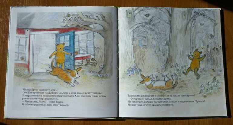 Наверное, это самая нежная и самая весенняя книга из нашей стопки. Трогательные рисунки в постельных тонах, хороший текст, простой и интересный сюжет. Теплое, легкое повествование о весенних радостях и заботах.