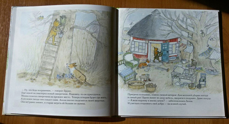 Очень многие моменты являются схожими и универсальными в жизни разных стран: изменения в природе, повадки животных. Разница в жизни людей. Но в этой книге она совсем незначительная. Мы также сажаем цветы, едим мороженое в кафе, красим яйца и гуляем на детских площадках.