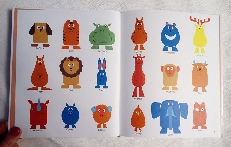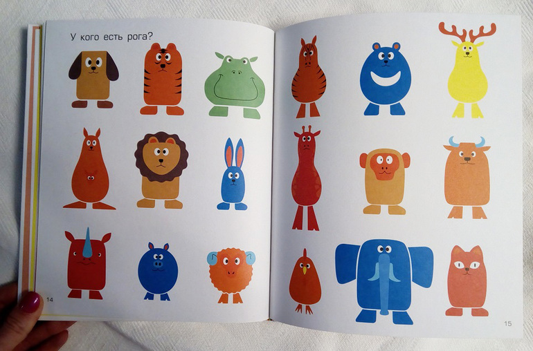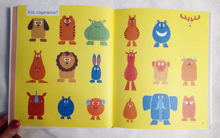 Книга с заданиями для малышастиков от 1,5 лет. В книге нарисовано 18 животных в анфас. А вот на форзаце вид этих красавцев сзади.
