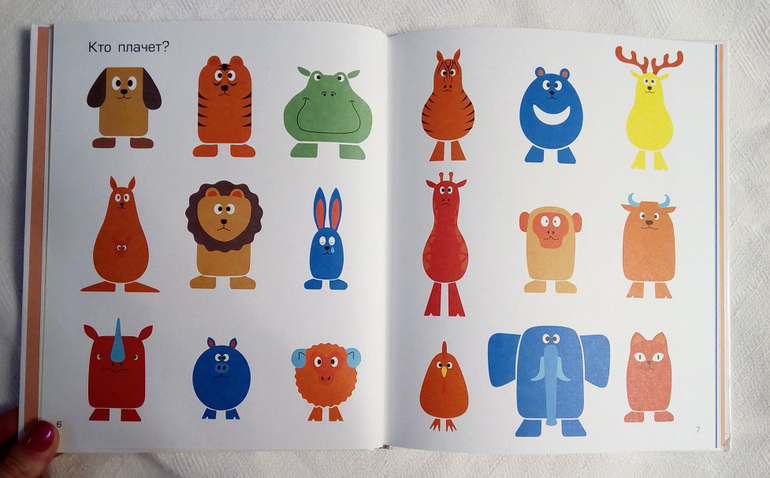 В заданиях "кто плачет? кто сердится? кто спит?" нужно найти одного героя. Дима в 2 года 3 месяца легко справился с этими заданиями. Только он не называл животных, а показывал на них пальчиком.