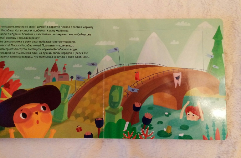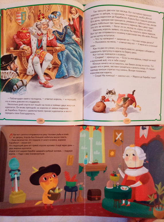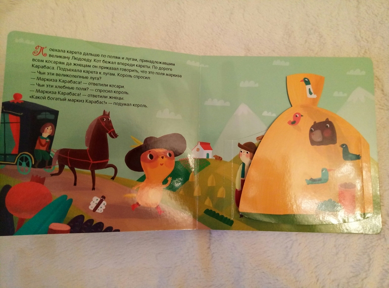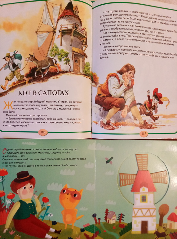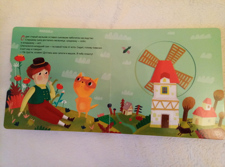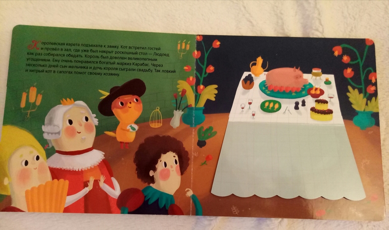 Кот в сапогах. Хочу сказать, обе книги я купила одновременно, и именно кот вызвал сразу интерес, который не проходит до сих пор. Купила я его на волне нашей любви к серии Клевера Тяни толкай крути читай, но захотелось мне более серьезного. Все таки Кот в сапогах это уже полноценная сказка. Отзывов на нее нигде не было еще, но меня книга как то сразу зацепила, несмотря на недешевую цену. Качество просто отличное!Страницы из толстенного неубиваемого ламинированого картона, закругленные уголки.