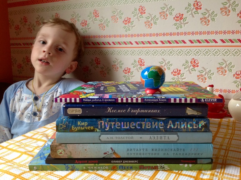 Книг о космосе у нас ну очень мало, сын не интересуется этой темой. Думаю, у нас всё ещё впереди))) А пока покажу то, что всё же нашлось!