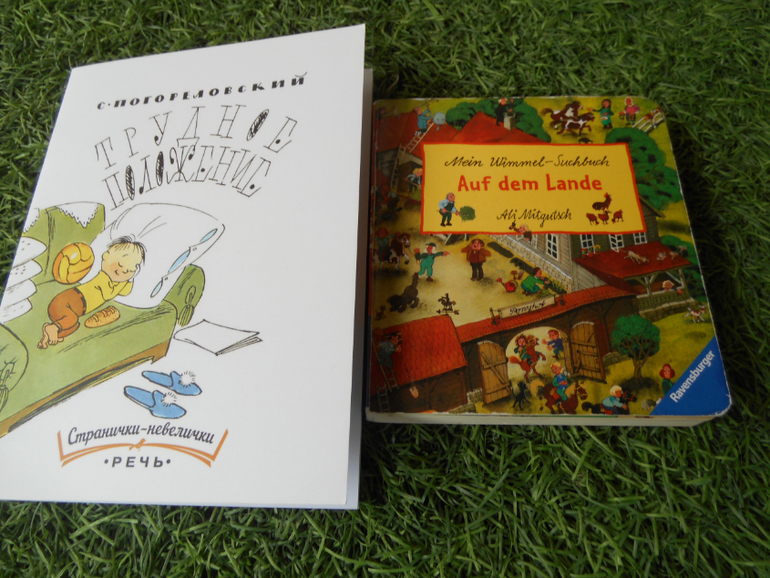 И еще немного. "Трудное положение", ну как-то совсем не пошло. А вот этот виммельбух - на ура! Приятный, маленький, карманного размера, нам его папа привез из командировки.