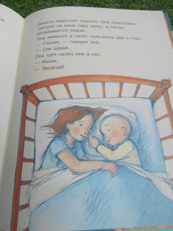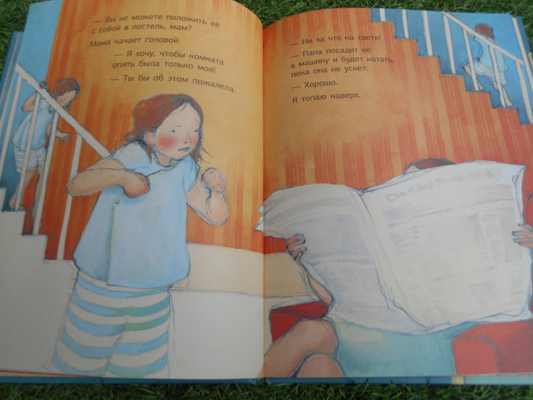 Если к содержанию у меня вопросы, то исполнение отличное. Нежные рисунки, прекрасная полиграфия, плотный офсет. Думаю, что книга может быть полезна для объяснения взаимоотношений детей в семье, старшая, которая умирала хотела спать, когда папа увозит малышку, встает у окна, наблюдая за машиной, и никак не может уснуть.