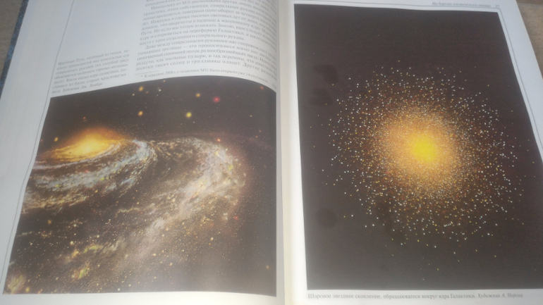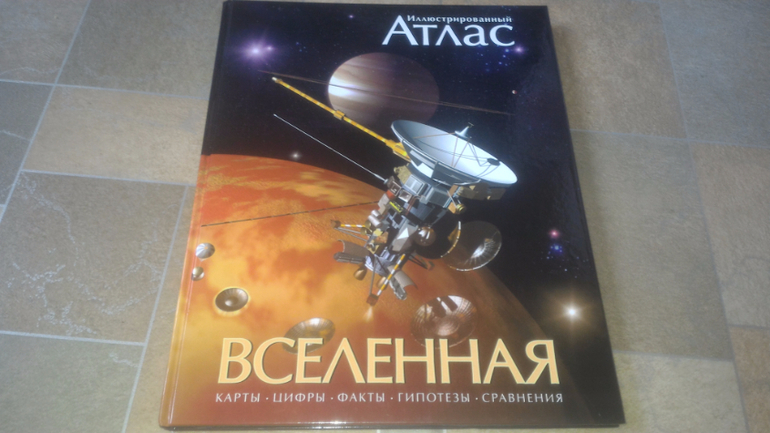 А это -две жемчужины нашей "космической" библиотеки. Первая - "Иллюстрированный атлас Вселенной" от Махаона. Безумно красивая книга с картами планет и созвездий, снимками из космоса, где рассказано о кометах, туманностях, звездах и галактиках.