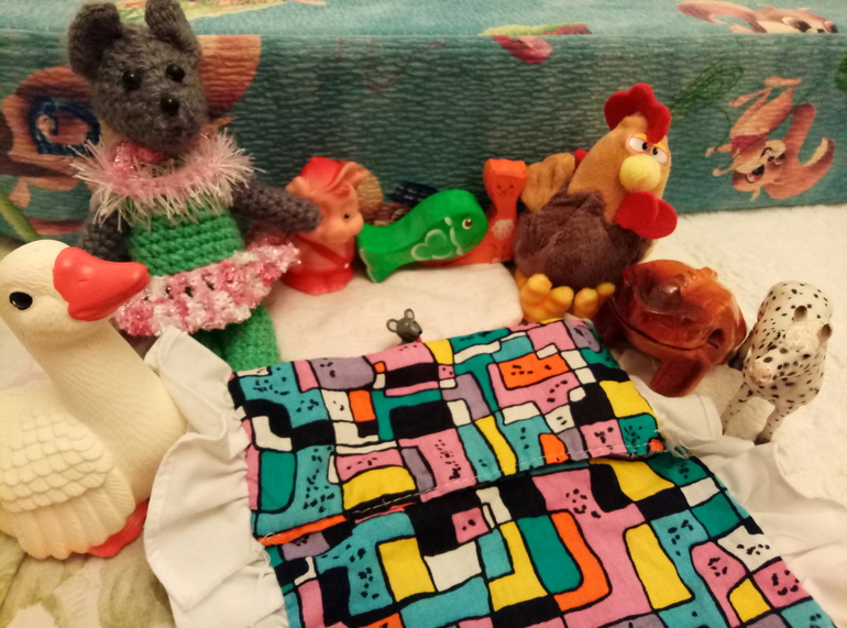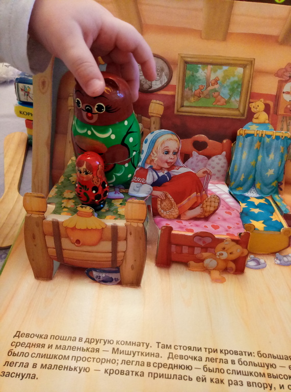 Еще начали читать Кто разбудил детку?я вспомнила, что у нас есть похожая игрушка детка, остальных вместе подбирали)