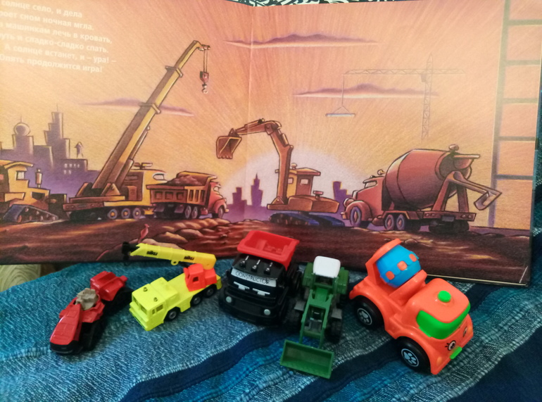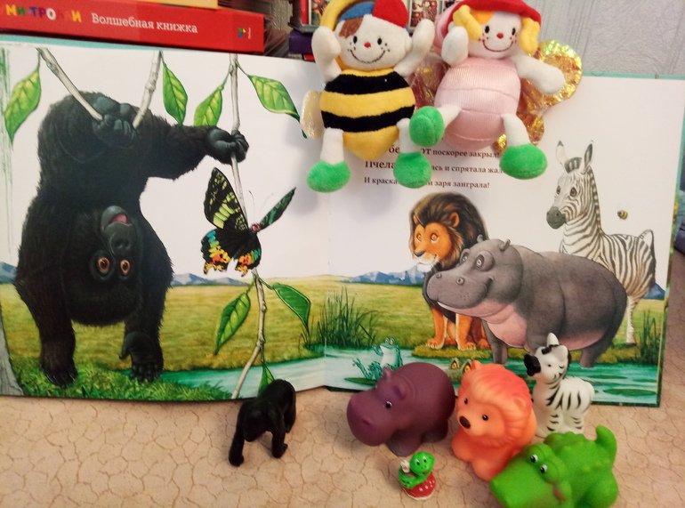 Как всегда, много обыгрываем по ходу чтения, ребенок уже втянулся и сам приносит игрушки, персонажей)