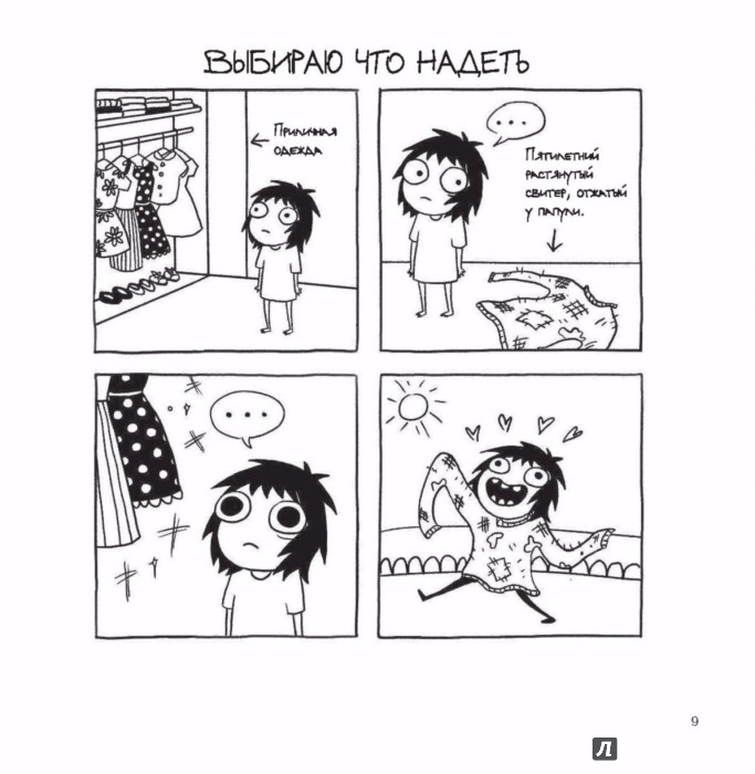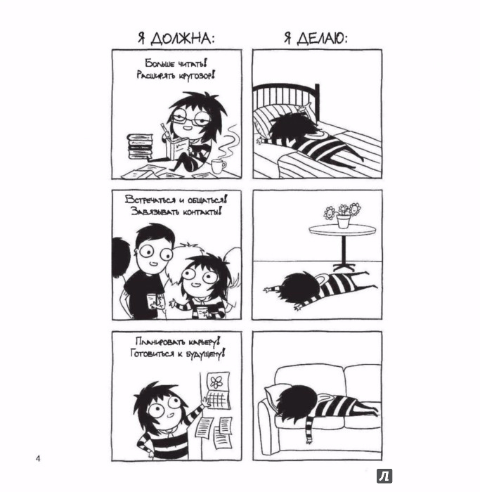 Сара Андерсен - суперпопулярная художница-иллюстратор, она рисует смешные и неловкие ситуации из жизни - истории о том, как не хочется взрослеть, как стыдно держать симпатичного парня за руку, когда у тебя вспотели ладошки, как жизнь вынуждает делать "взрослые" дела, когда хочется просто лежать дома в пижаме. В конце концов, как сложно заняться делом, когда столько всего интересного в Интернете!