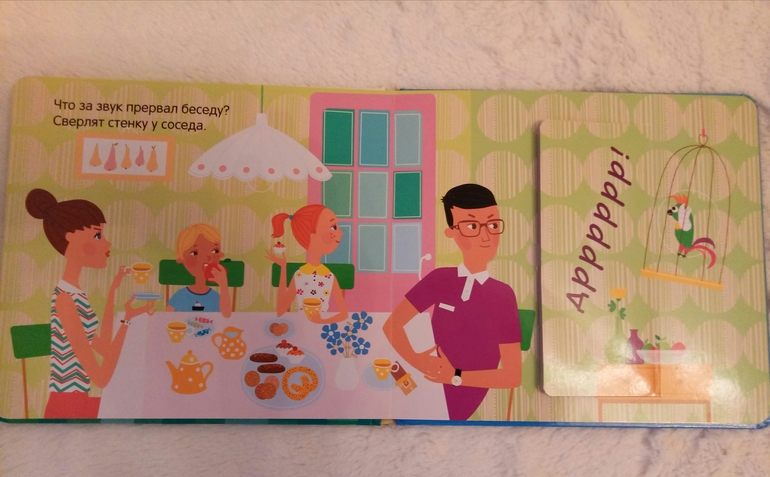 Соответственно, и клапаны прочные, единственно, мы некоторые немного заломили. Но зато не так легко рвутся, например, в Где спит птичка все клапаны у нас скотчем проклеены уже, а тут держатся. И закругленные уголки, что важно в детских книжках.
