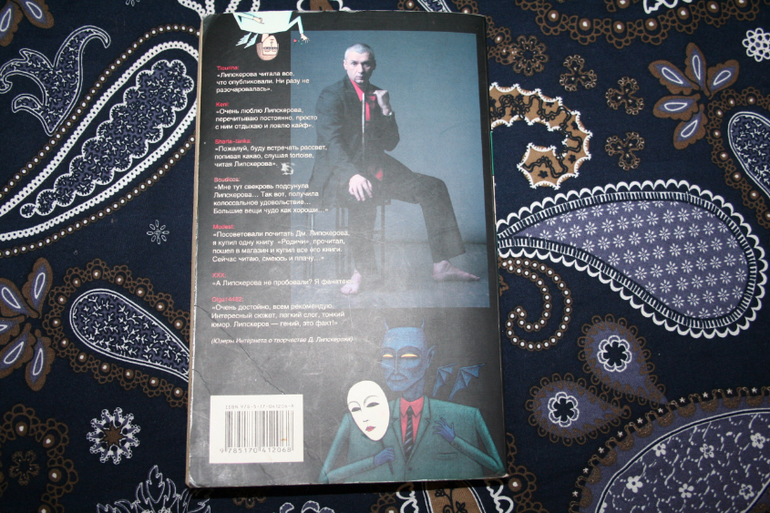 Могу ли я рекомендовать эту книгу к прочтению? Не знаю, затрудняюсь ответить на этот вопрос. Если с классикой все понятно, то с современной литературой мне определиться сложнее. Для меня это непознанная территория. Могу сравнить Липскерова с Пелевиным, чем то они похожи. Если Вам нравится Пелевин, его последние книги про вампиров и тд, то вероятно, что и Липскеров Вам понравится. Мне Липскеров показался повеселей и попроще, чем Пелевин. Не такой занудный. Я пробовала читать разные книги Пелевина, обычно на середине я сдувалась и бросала, мне становилось скучно, особенно, когда пытаешься понять и вникнуть в суть, голова начинает пухнуть от богинь Эштар и тп.