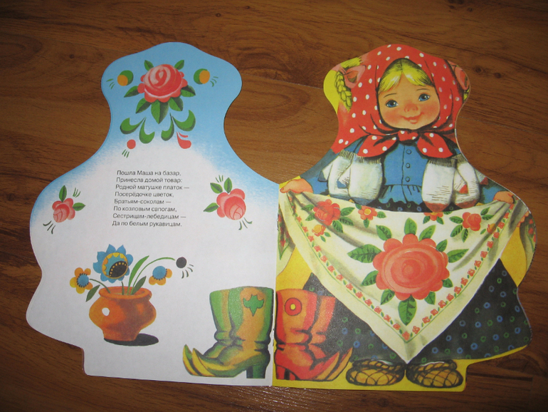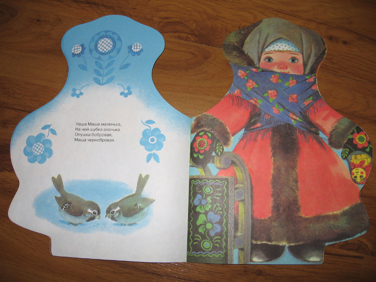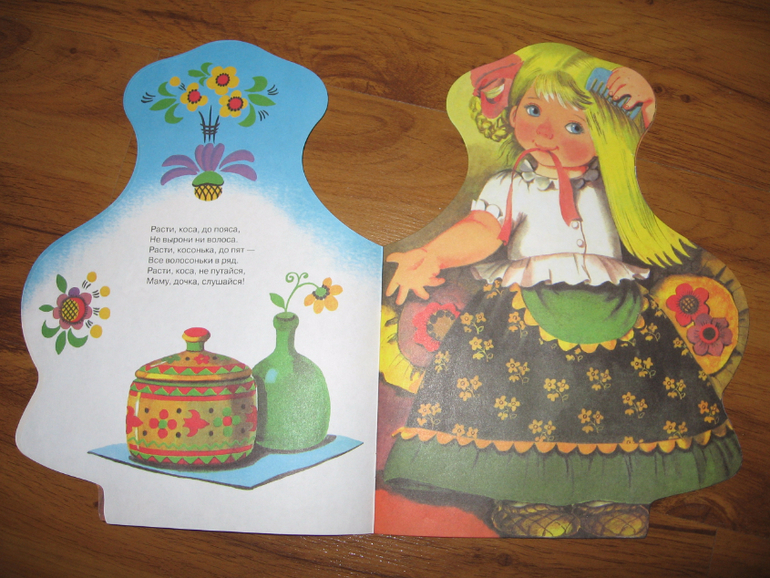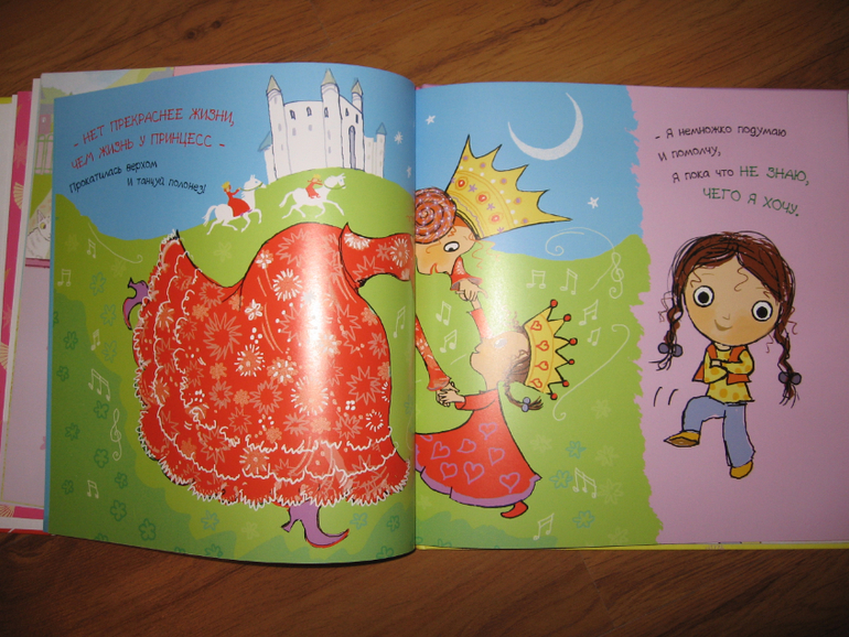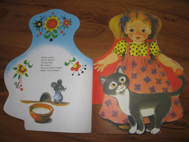 Книга с красивой девочкой и коротенькой песенкой на каждом развороте. Алиса сейчас слушает книги в основном с героями-девочками, куколками, принцессами и пр. Близка нам эта тема, поэтому книжечки постоянно обновляем, чтобы интерес к чтению не пропал. Собственно, сами песенки ей не особенно нравятся, хоть и читаем их тоже, а вот девочками постоянно любуется, каждая, естественно, Алиса или "Мадама" (она себя еще и так называет). Русские народные песенки в обработке Н. Иваницкого и О. Капицы, ставшие уже классикой, я их тоже в детстве слышала много раз.