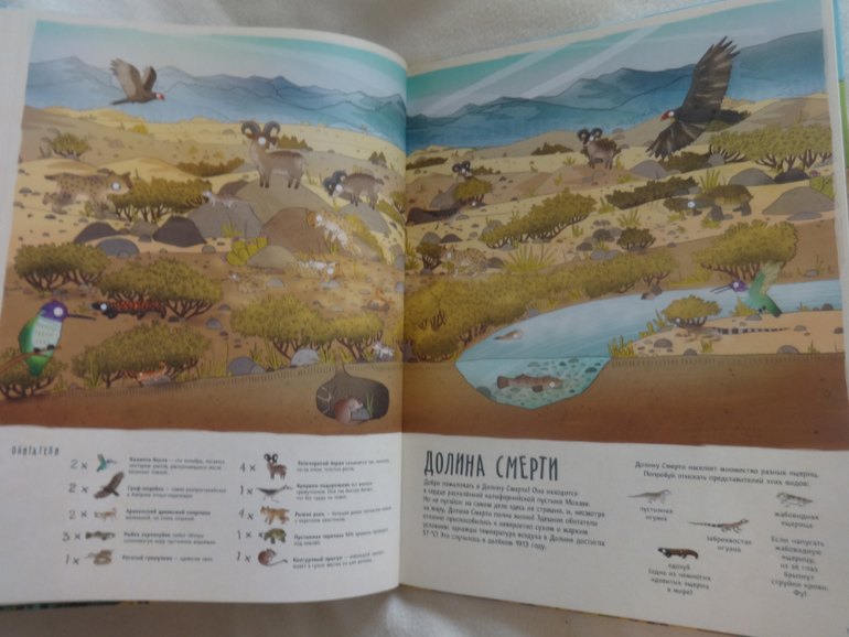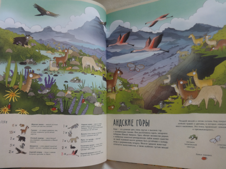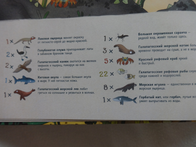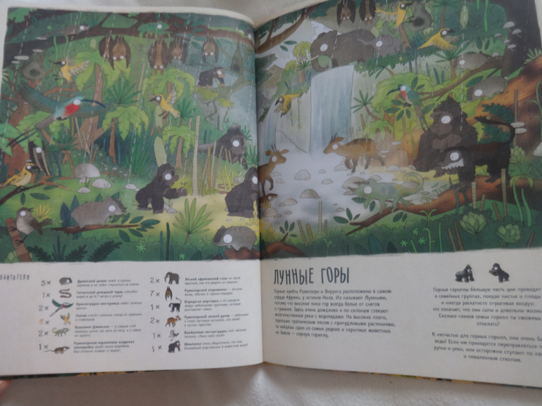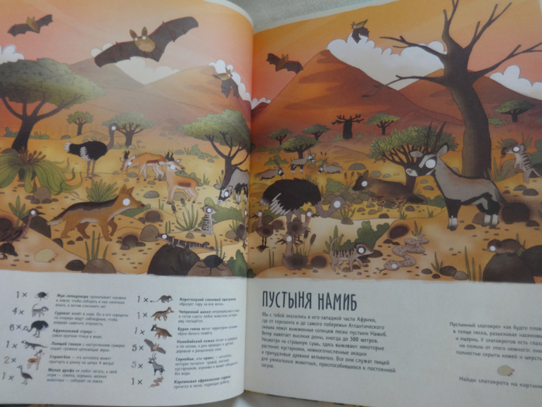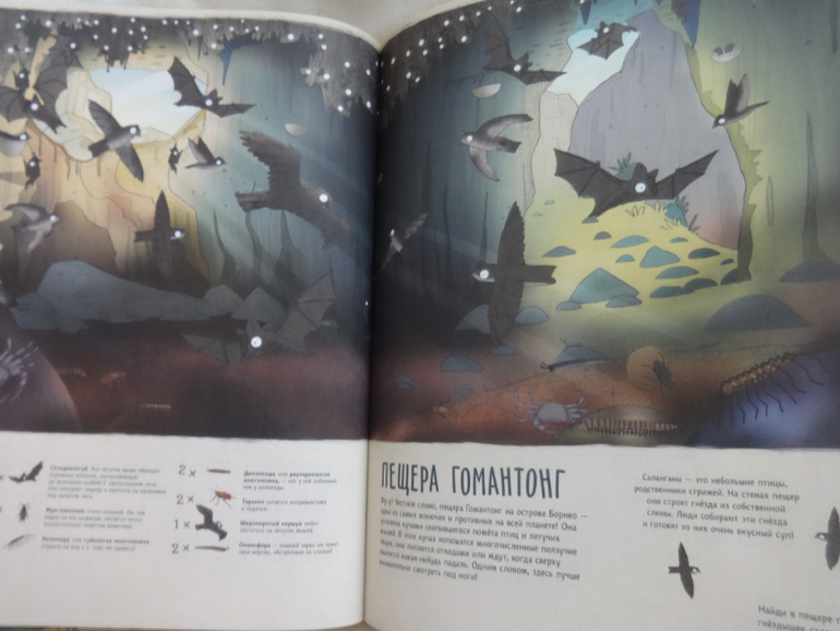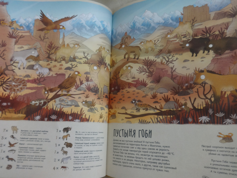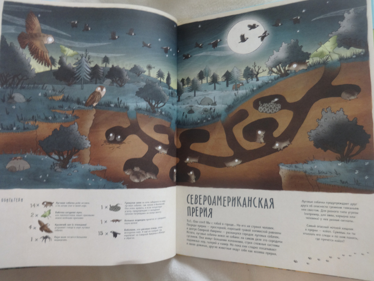 Эта книга удивительна тем, что на каждом развороте приходится "посидеть": прочитать некую информацию, о которой раньше не догадывался, познакомиться с обитателями описаной местности, и выполнить задание - найти их всех