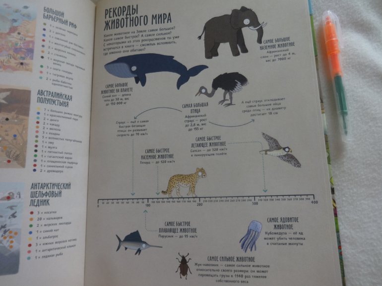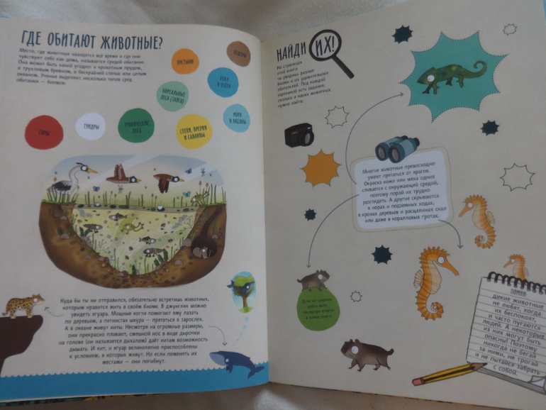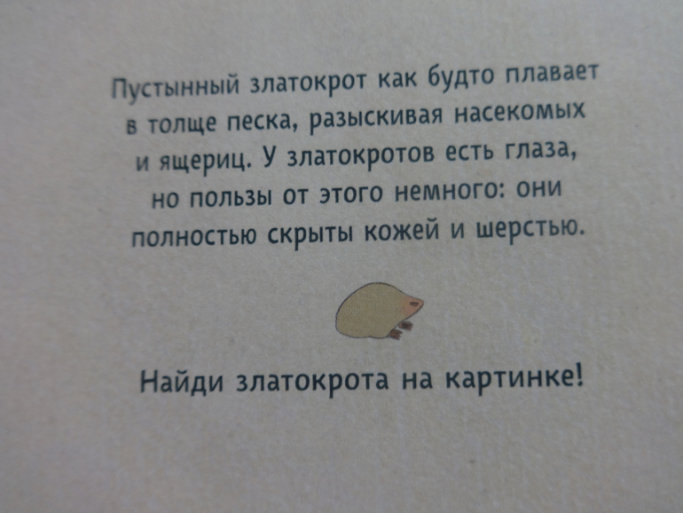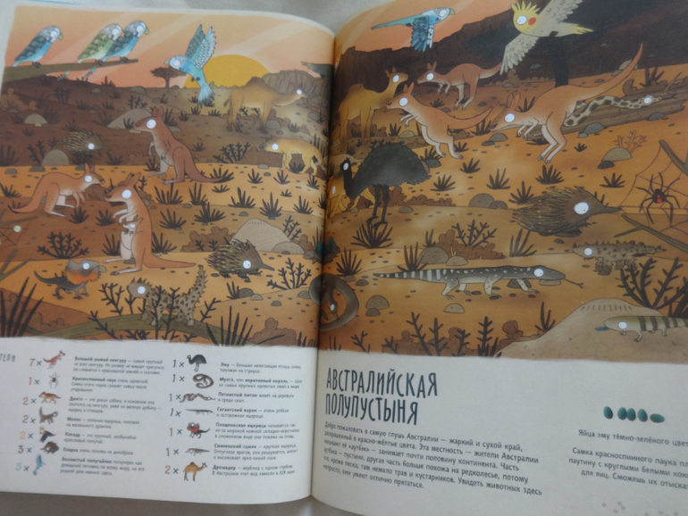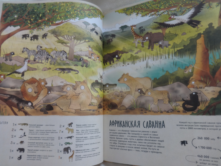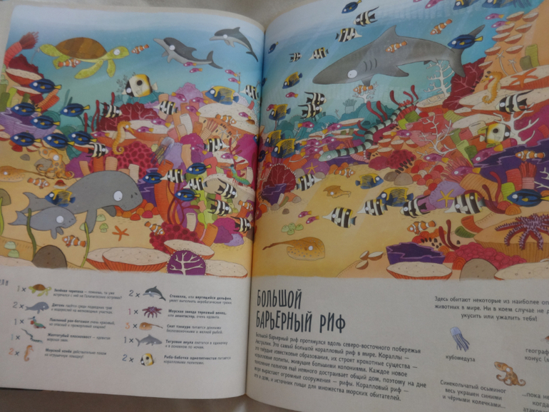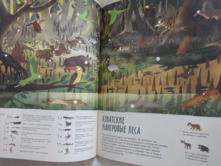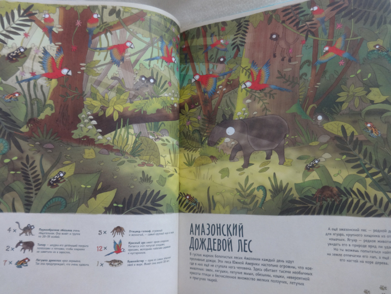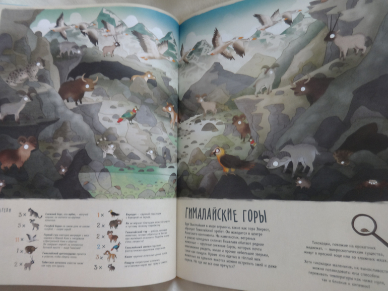 Эта книга удивительна тем, что на каждом развороте приходится "посидеть": прочитать некую информацию, о которой раньше не догадывался, познакомиться с обитателями описаной местности, и выполнить задание - найти их всех