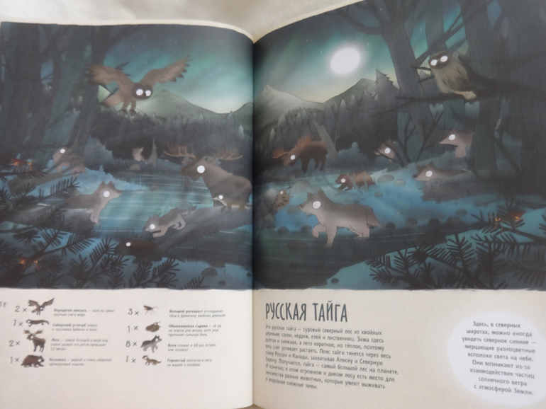 Мы с девочками не могли оторваться - проглотили сразу полкниги, как голодавшие год. Девочкам еще было задорно искать обитателей в духе соперничества, кто быстрей и кто больше разыщет нужного зверя. (хотя я им такого задания не давала, я сама старалась при пересчете глазастиков не сбиться