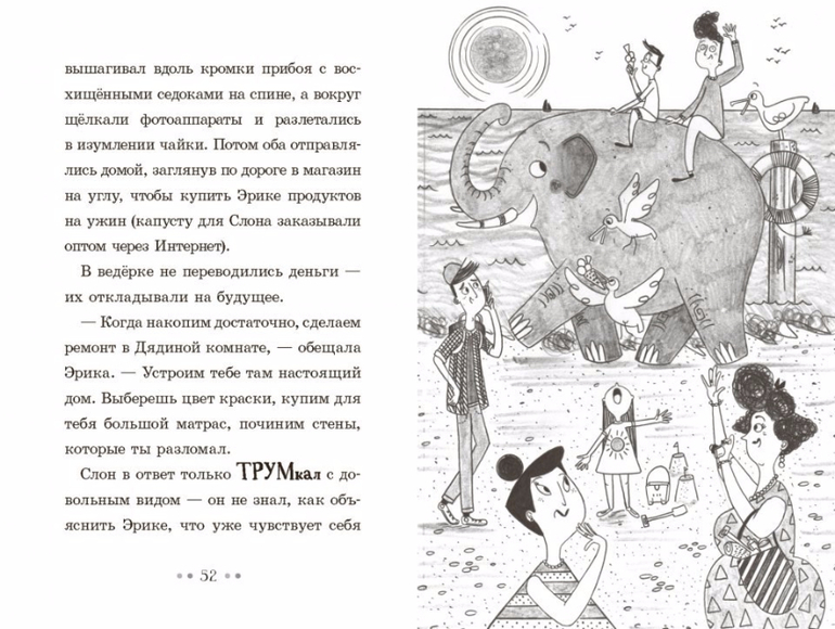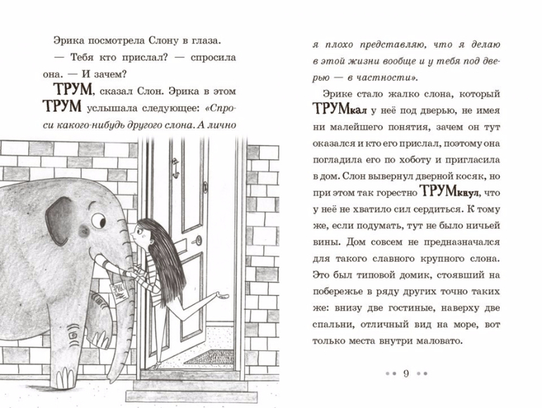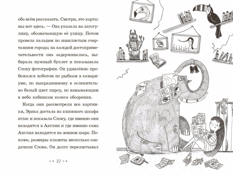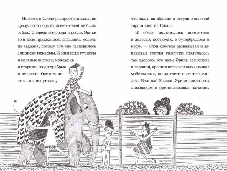 Эрике Перкинс исполняется десять лет, и уж чего она не ждёт, проснувшись утром, так это обнаружить под собственной дверью очень растерянного слона. Научатся ли маленькая девочка и большой слон жить вместе в крошечном домике? А когда слона надумает похитить коварный владелец местного зоопарка, сумеет ли Эрика его перехитрить? Замечательная история о необычной дружбе между девочкой и её слоном.