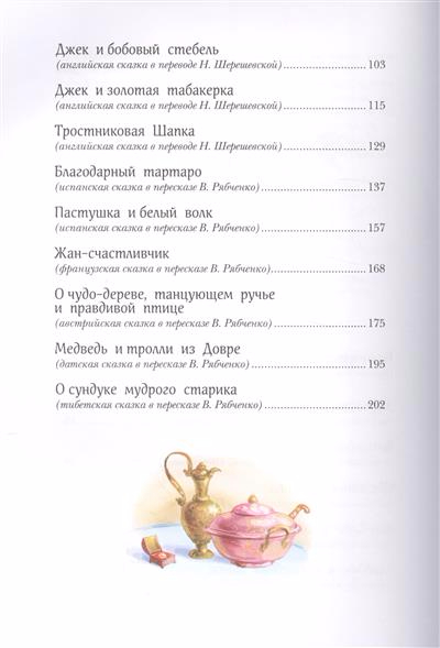 В книге собраны волшебные сказки разных народов мира: русские, чешские, итальянские, французские, английские, испанские, арабские, датские и даже тибетские. В них отважные герои, чтобы завоевать сердце принцессы, сражаются с драконами, феи и волшебники помогают храбрецам найти свое счастье и добро всегда побеждает зло.