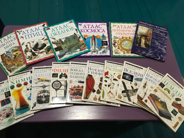 Это сохранившиеся от старших серии издательства Дарлинг Киндерсли. Их книг у нас очень много.