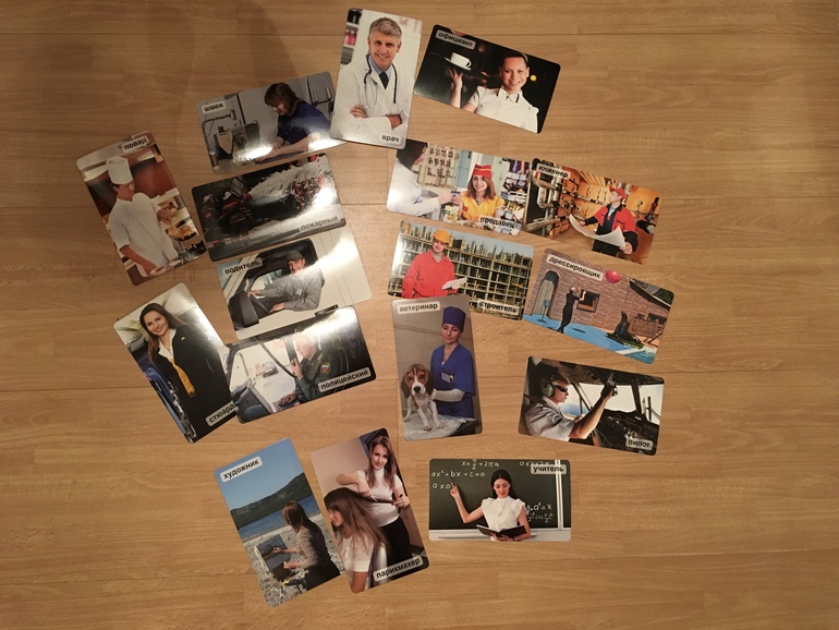 Это карточки от Умницы по профессиям - у нас хит) а те тонкие книжицы ты можешь посмотреть у Ирины с тремя дочками, она про них писала)