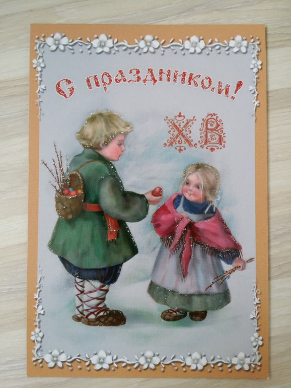 Внутри ждала очень атмосферная и добрая пасхальная открытка.