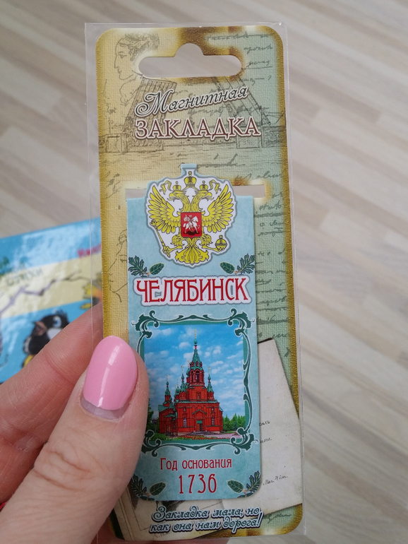 К книжечке вот такая магнитная закладка с достопримечательностью Челябинска. Я после этого даже погуглила про "знаковые места" города :-)