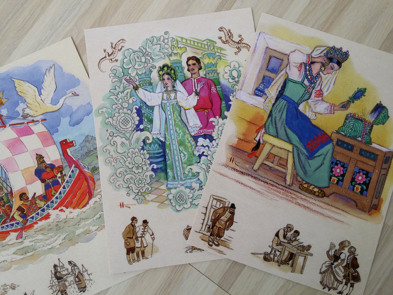 А это комплект открыток с иллюстрациями Кочегина. Они волшебные! Какое же все русское, какое все красивое, как из мультфильмов детства