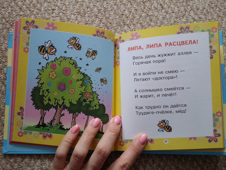 В книжечку заглянула - очень красивое оформление, эта рамочка с цветами на нежном фоне, ммм. Загадки для Илюши будут на потом, а вот до стихотворений дорос, более того, полистал после сна, и даже фавориты вырисовались :-)