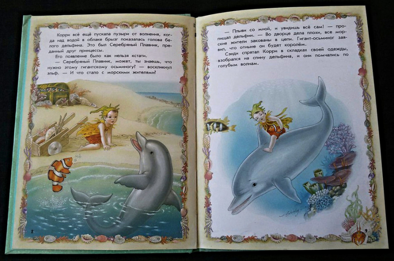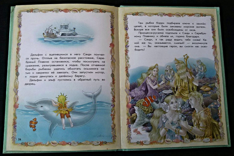В другой книге помощь эльфа Сэнди потребуется очаровательной русалочке. Спасаясь от акулы, русалочка поранила хвост об острый коралл. Она сидела на мелководье и не могла уплыть домой. Эльфу придется переплыть риф на своей маленькой лодочке, отыскать подводный город и привести помощь.