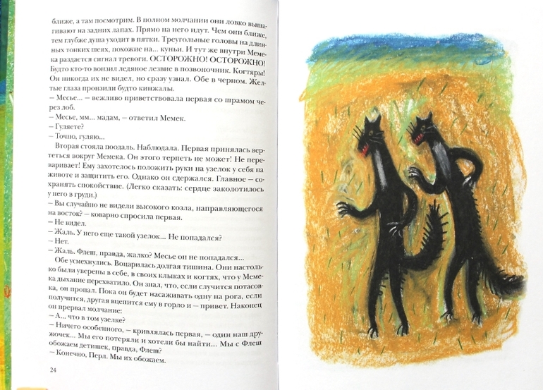 Куницы хищники и для их персонажей даже не нужно было тратить слов на объяснение их жестокости. Представьте себе абсурдность ситуации, когда в городе куниц Мемек (козел) читает меню в ресторане - «Ягненочек на сковородке, Фрикасе из кролика».