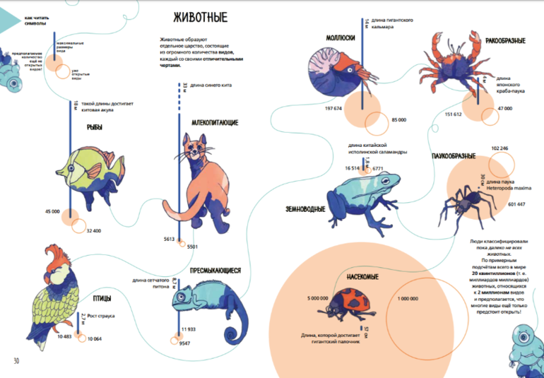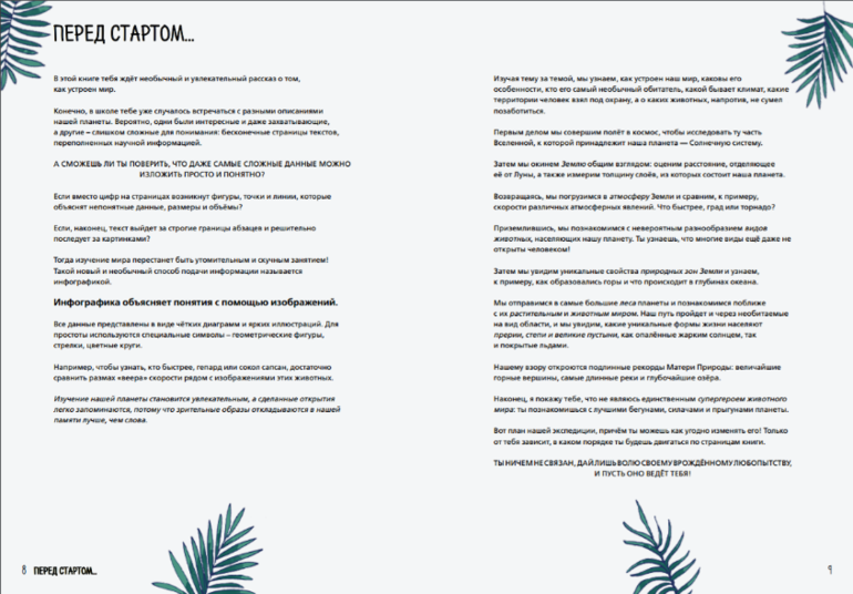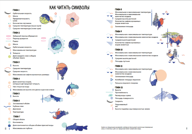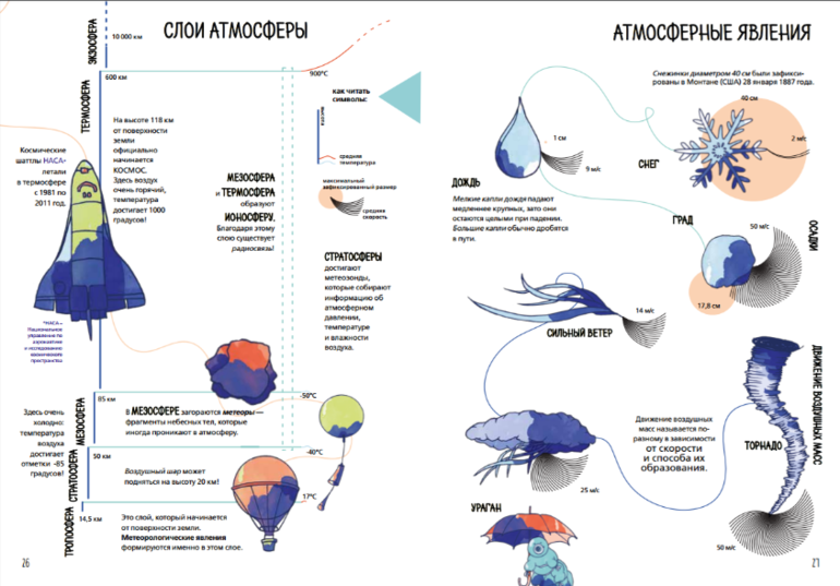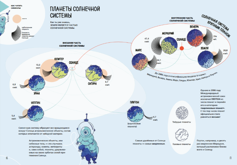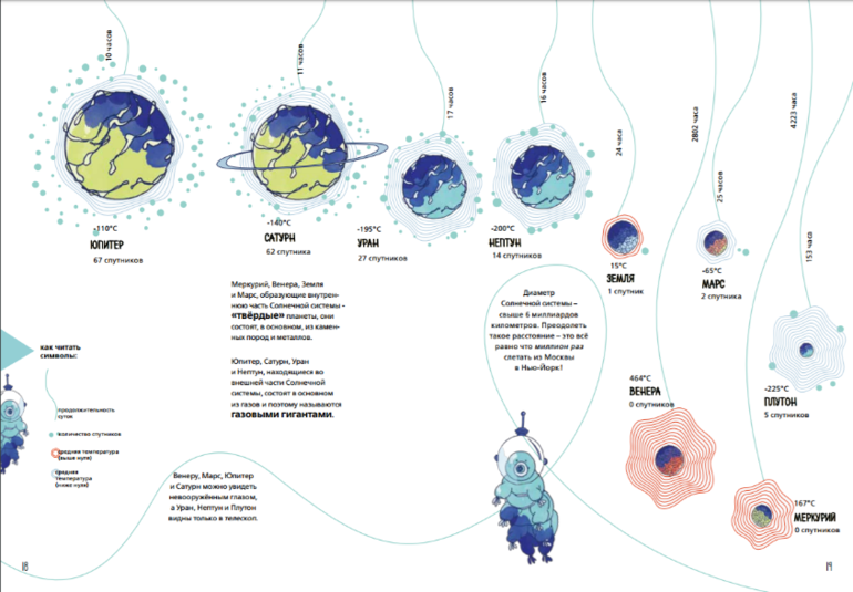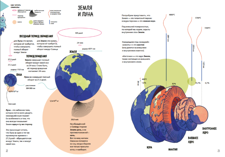 Книга представит окружающий мир через призму разных наук: биологии, географии, геологии и астрономии - и расскажет обо всём на свете: от планет Солнечной системы и строения Земли - до гор, морей и равнин с их обитателями. Наглядно и кратко вся информация представлена с помощью инфографики: рисунков, условных обозначений, схем и диаграмм. Инфографика помогает запомнить факты через зрительные образы и упрощает сопоставления величин. Так, например, можно понять сравнительный размер планет Солнечной системы, их удалённость от Солнца и скорость вращения.