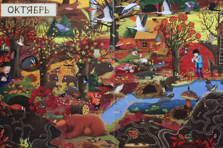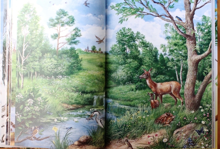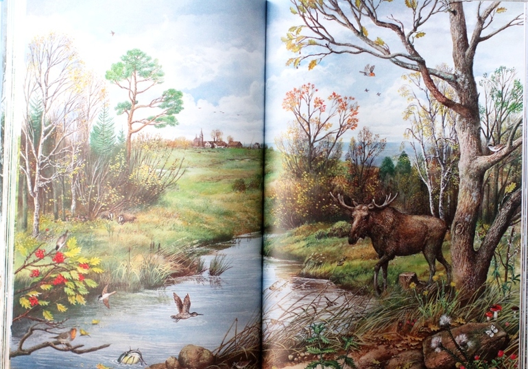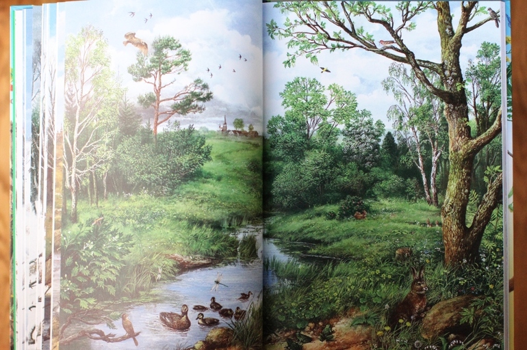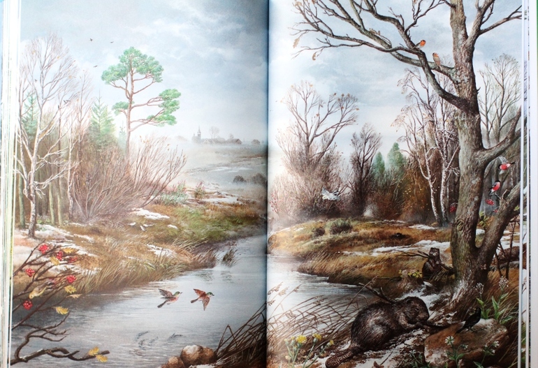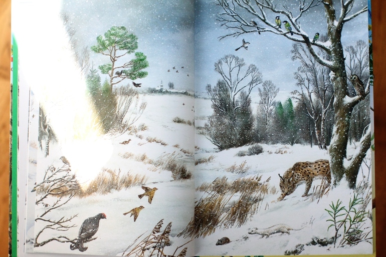 Меня в ней покорили иллюстрации: настоящие пейзажи, хоть на стену вешай, в которых просто удивительно переданы дух и настроение каждого сезона - не где-нибудь, а именно в нашем, русском лесу средней полосы.