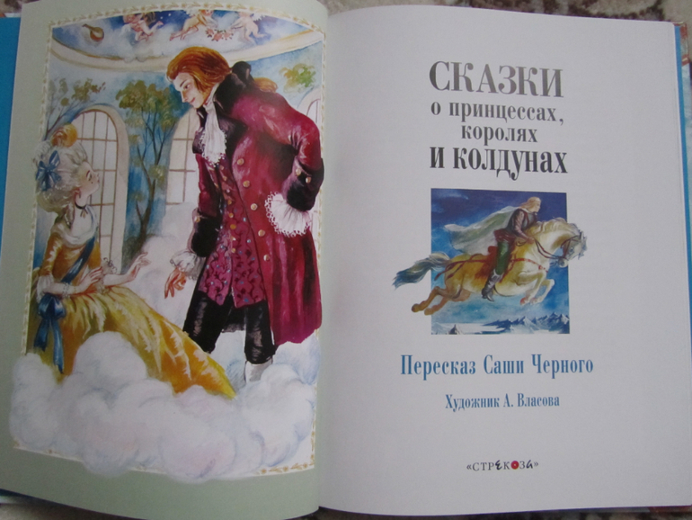Дочка всё время меня просит про принцесс что-нибудь почитать и тут опять же в Ашане глаз наткнулся на эту книжечку, схватила сразу пролистав немного и увидев имя Саши Чёрного на обложке. Имена авторов сказок для меня вообще оказались незнакомы..А оказывается эти авторы впервые издаются в России! Это можно сказать эксклюзивное издание )) Эти сказки Саша Чёрный пересказал в 20 -х годах прошлого века в Берлине и могли их читать только дети эммигрантов. И вот один библиофил и большой поклонник творчества Чёрного разыскал эти сказки и теперь и мы можем ими наслаждаться. А проиллюстрировала книгу замечательная художница всем нам хорошо знакомая Анна Власова, очень красивые образы у неё получились. Сами сказки тоже понравились, в лучших традициях Братьев Гримм, но без особой жестокости, так что можно читать и старшим дошкольникам ))