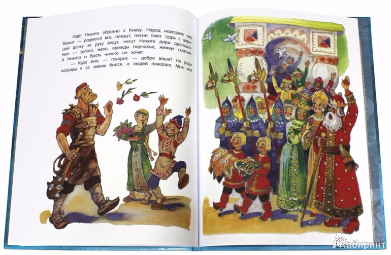 Три русские народные сказки: "Никита Кожемяка", "Деревянный орел" и "Морозко" - в книге "Никита Кожемяка. Русские народные сказки" сопровождаются стилизованными иллюстрациями Леонида Владимирского. Все герои на рисунках добрые, благодаря чему сборник подходит для самых маленьких читателей.