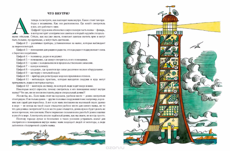 Ага). Сама не ожидала). Вроде и книжица небольшая, но столько интересного! И про Александрийский маяк - сын потом его из лего строил и фильм про него посмотрели документальный), даже не ожидала, что ему так интересно будет. И про то, как строили маяки, что могло разбить волнами. а когда построили каменный маяк на скале, то он выдержал, а вот скалу со временем размыло. О том, что светит маяк разными цветами иногда, о людях, которые погибли на маяке из-за нехватки витаминов длинной зимой (как оказалось, ели одно мясо, а витамина С не хватило). Как возникли маяки, что есть маяки плавучие, ... В общем уже понятно, что я в переизбытке эмоций от книги)))