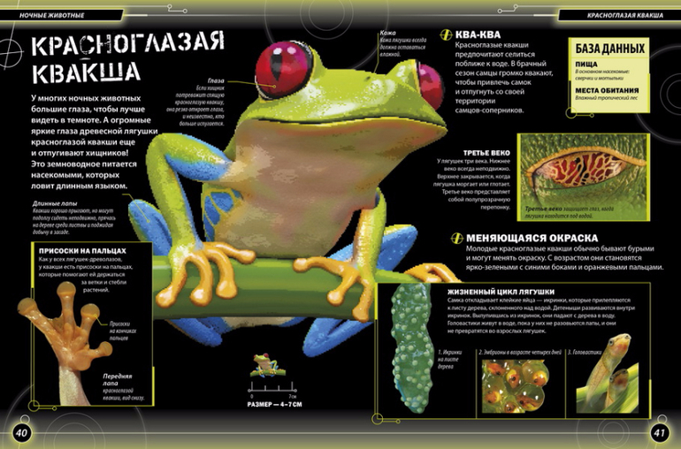 Книга «Ночные животные» адресована школьникам в возрасте от 7-13 лет. Эта энциклопедия станет прекрасным подспорьем в выполнении домашних заданий, докладов и рефератов по биологии и будет любопытна для изучения не только детьми, но и родителями. Реалистичные фотографии и точные рисунки, а также плакат сделает эту книгу одной из самых любимых вашим ребенком. Стоит отметить структурированную подачу информации в энциклопедии: все факты и интересные подробности вынесены в отдельные блоки, а каждый разворот книги рассказывает о том или ином ночном хищнике, или насекомом и даже о домашних животных. Здесь вы найдете ответы на множество вопросов и на такие как: отчего кошки видят в темноте, почему светятся те или иные насекомые и как хищники безошибочно находят свою добычу в темноте!