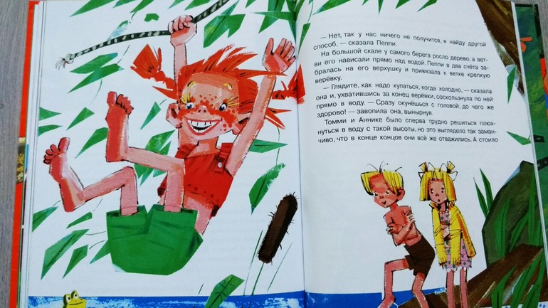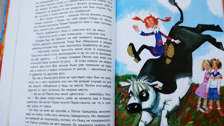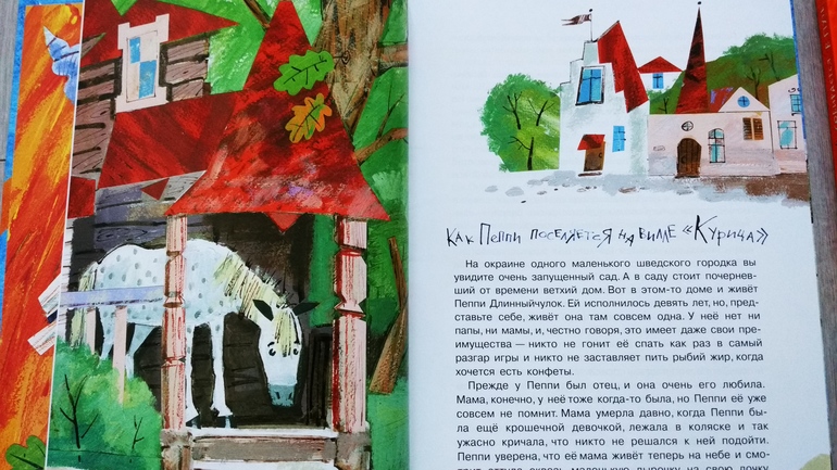 В детстве я не читала, наш советский фильм не любила - скучный, на мой взгляд)) поэтому, принеся домой из пункта самовывоза, полистала-почитала урывками и решила отложить, так как книга, все-таки, на возраст от 7-ми лет...Но сын увидел Пеппи, а иллюстрации яркие, красочные, на каждой странице, и спросил - о чем книга. Я сказала, что о девочке, которая жила одна без родителей, и ее приключения. Сына заинтересовал мой ответ, и мы начали читать. Первая книга "Пеппи Длинныйчулок поселяется на вилле "Курица"" была прочитана "взахлеб") по утрам сын вставал в сад и говорил - быстрей бы вечер, читать Пеппи. Вторая - "Пеппи Длинныйчулок собирается в путь" - до середины тоже прочитана быстро. И все)) дальше ни в какую) сын забросил и больше читать не приносит, не хочет.. надо сказать, я тоже устала от нее)) Пеппи останется на самостоятельное чтение.