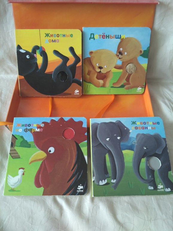 1. Любимые животные - это большая красивая коробка, внутри которой 4 небольшие квадратные книги. Книги у нас уже местами подклеены, но это от большой любви))