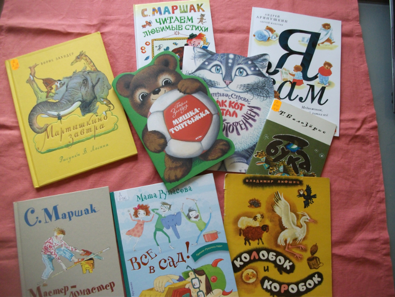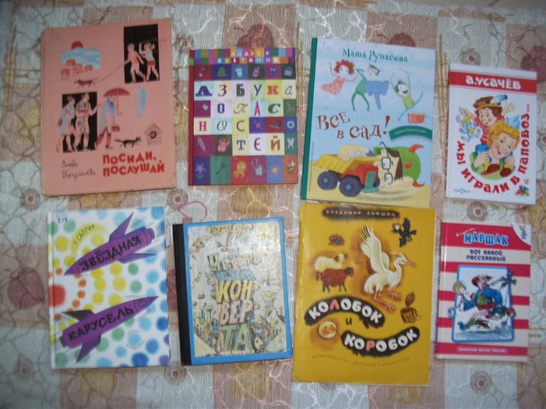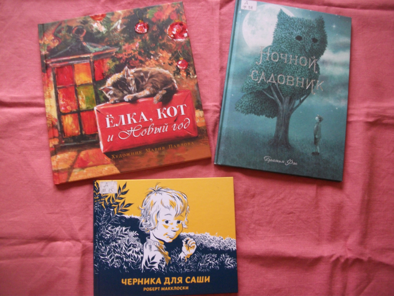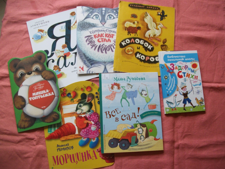 Книжки -картинки. Все понравились. Садовника отдавать в библиотеку не хочет)) хотя читать там нечего., если только самостоятельно.