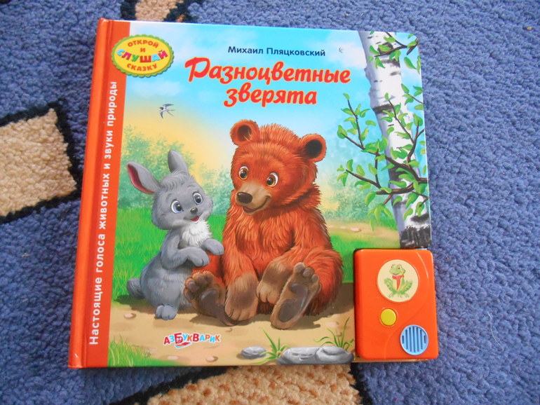 Иллюстрации яркие, чудесные, присутствуют звуки леса, озвучивает приятный голос. Но пока не слушаем, а пытаемся пролистать как можно скорее все страницы. Книжка вообще не понимает, что от нее хотят, наверно уберу подальше, пока не сломали, как 2 предыдущие.