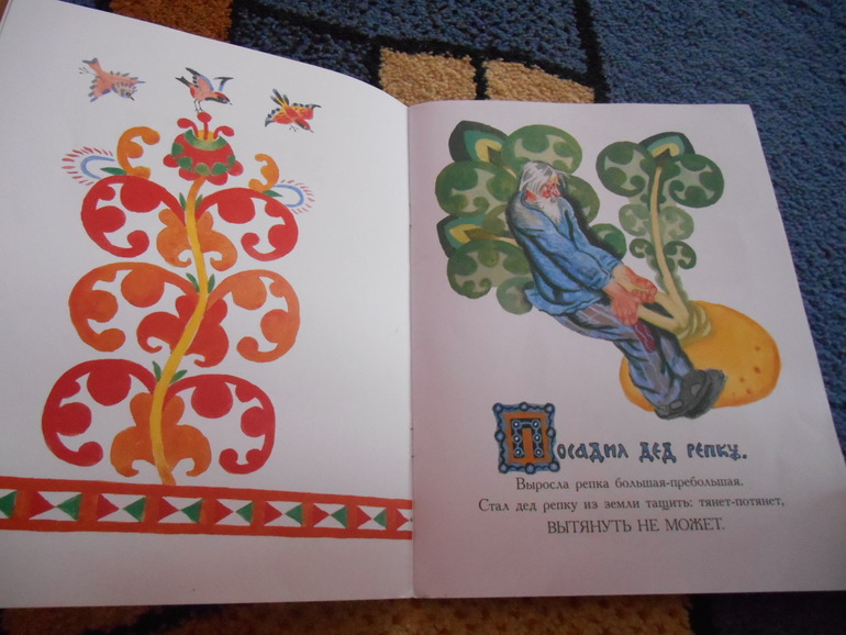 "Репка". Я как увидела эту книгу, не раздумывая, взяла. У меня была именно с такими иллюстрациями. Потрясающая!!!