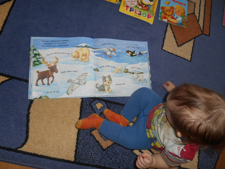 На последней странице нарисованы все животные, я спрашиваю дочку, кто где, она показывает.