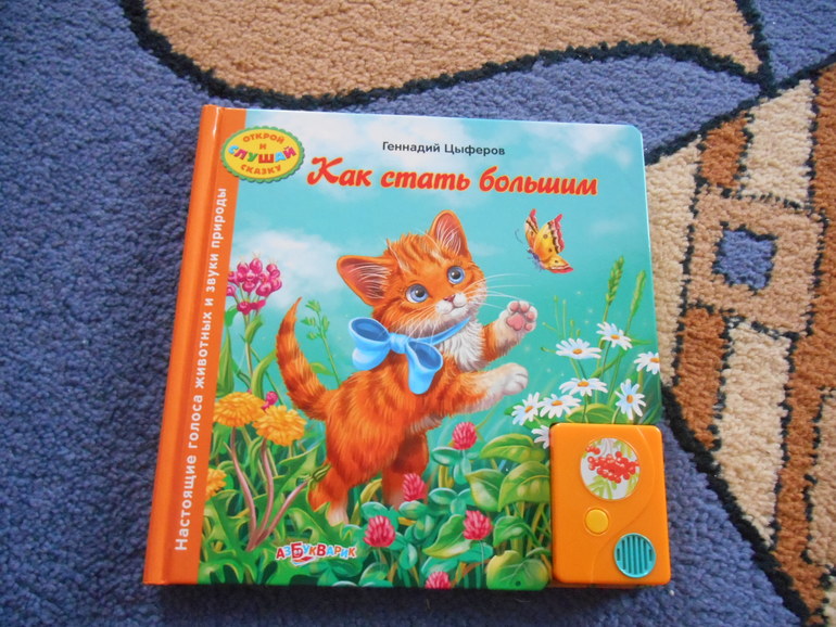 Покупала на Майшоп, больше нигде не нашла. Книга очень хорошая, большой формат, животные шершавые, приятно потрогать, страницы мелованные. Иллюстрации милые, добрые. Дочка часто приносит читать, сама листает. Несложные звуки, все, что надо для годовасика.