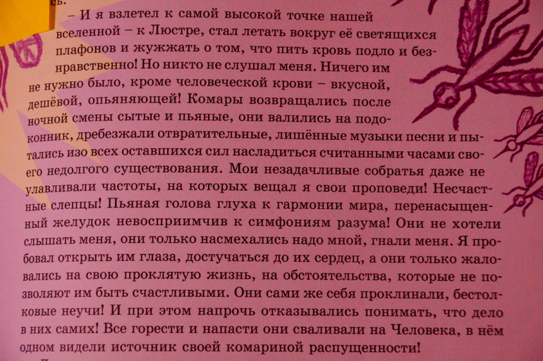 Мой тоже слушал как историю про насекомых, если бы не этот подтекст( который занимает все же часть теста) может она и интереснее детям была. А ещё что-то подобное читали, про домашних насекомых?