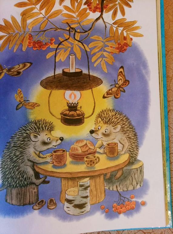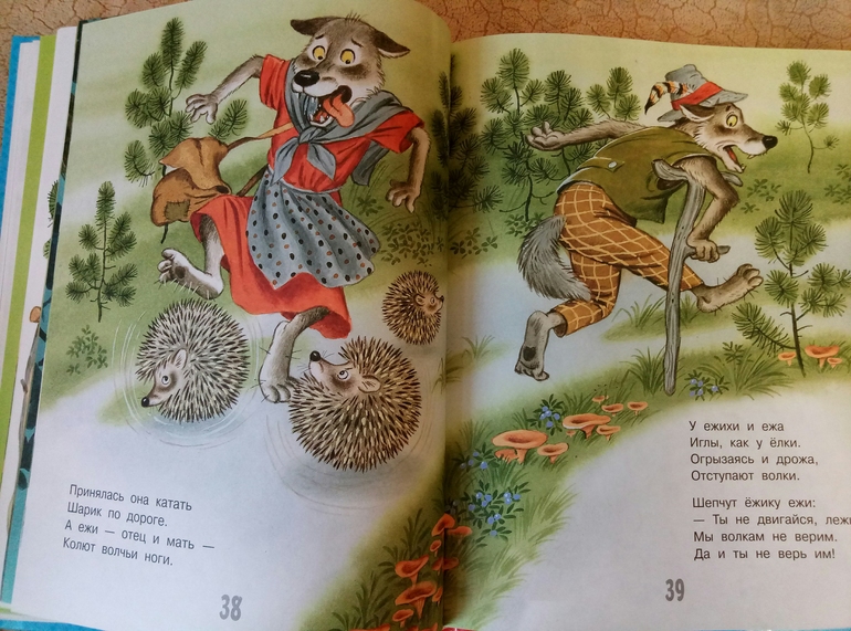 Про ежей текст вообще на одной странице, а иллюстрация на другой.